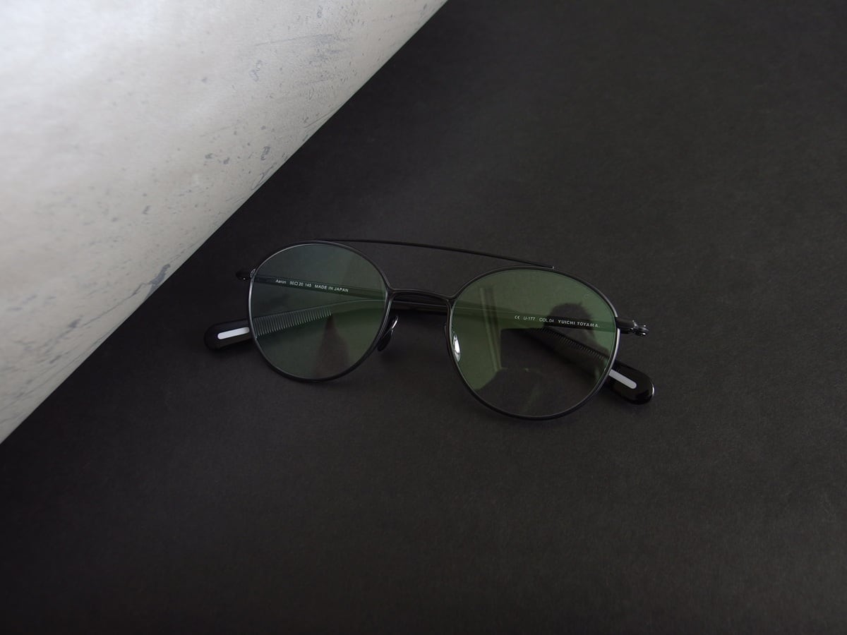 掛け外しの容易な半掛けテンプルに“つままれた”ような細いヨロイと合口は、独自の遊びがあるアンバランス感でYUICHI TOYAMA.のニュービンテージを提案。