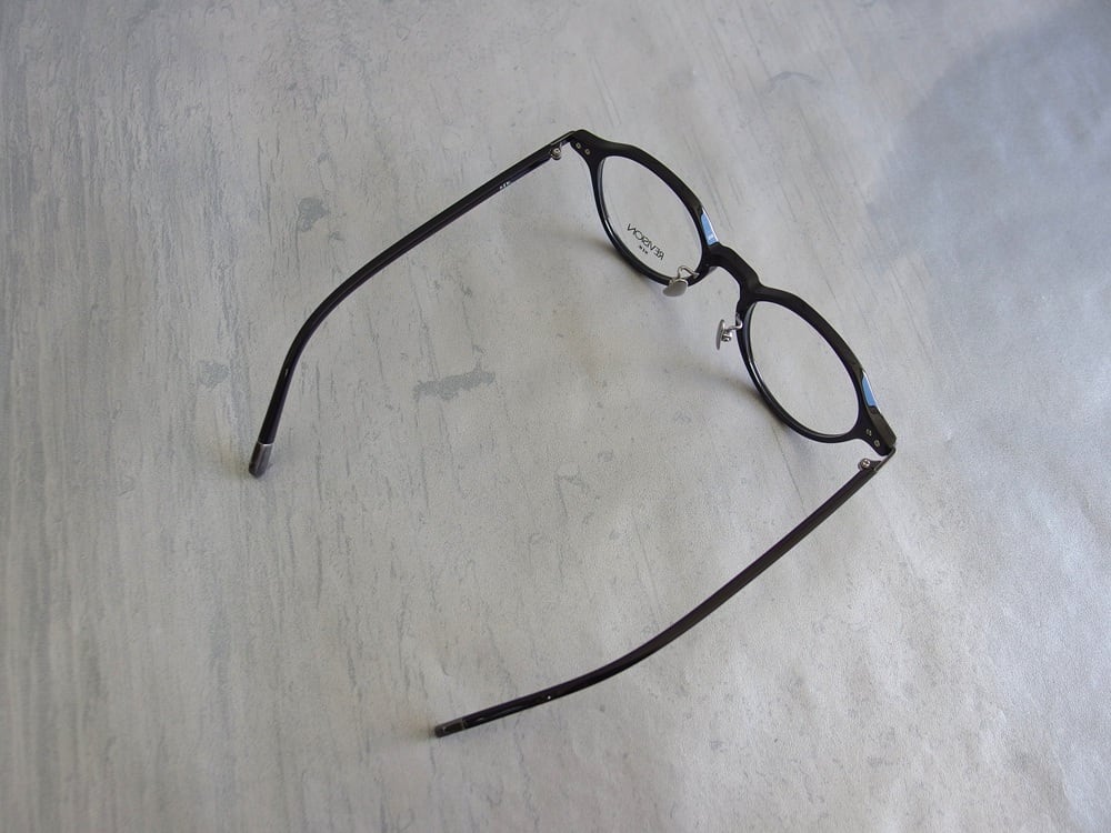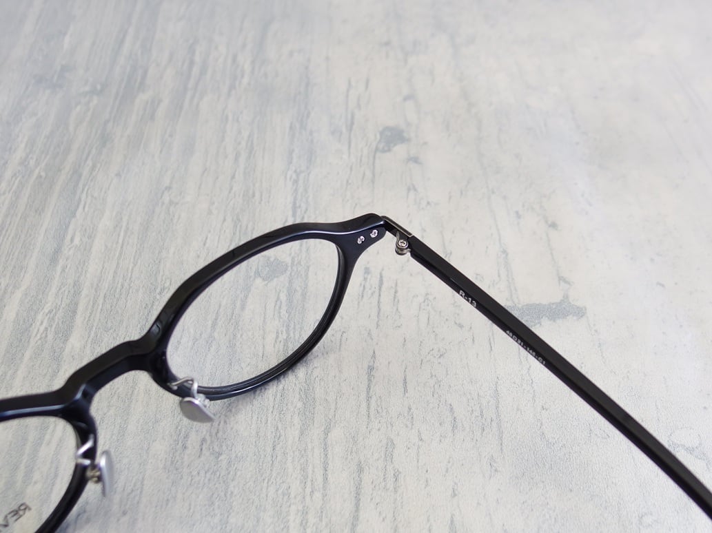 ミニマルで最小限のデザインながらダメージメッキ(アンティークシルバー)を施したチタンパーツを「テンプルエンド」や「ヨロイ」に使用し、フィッティングに拘ったボストンフレーム。